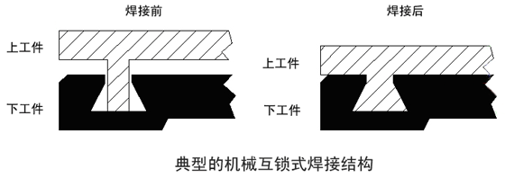 原因二:超聲焊件材質(zhì)不同。經(jīng)超聲焊接的兩焊件盡可能使用相同材料,如PA與PA,PS與PS。相對(duì)來講,半結(jié)晶塑料不易用超聲焊接。如果兩焊件材質(zhì)不同,建議將超聲結(jié)構(gòu)做成機(jī)械互鎖式: