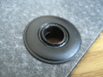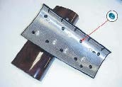 圖4 所示的被鉚固在壓制成型的木質(zhì)纖維車(chē)門(mén)骨架上的內(nèi)飾板蒙皮組件采用了空芯鉚柱(管狀熱樁)外翻邊鉚接工藝。由于外翻邊接觸面積大,連接強(qiáng)度高,因此可有效 地避免長(zhǎng)期振動(dòng)而引起的松動(dòng)、脫落或撕裂現(xiàn)象,使整個(gè)組件能更有效地實(shí)現(xiàn)吸音、降噪和保溫隔熱的作用,從而有效地改善了車(chē)內(nèi)環(huán)境。在靠近邊沿的狹長(zhǎng)部位, 采用了立筋鉚接工藝以加大鉚帽的接觸面積,防止邊緣處受力時(shí)出現(xiàn)撕裂、脫落的現(xiàn)象,從而有效地克服了木質(zhì)纖維板材拉伸效果差的缺點(diǎn),最終與塑料件組合成最 佳結(jié)構(gòu)。